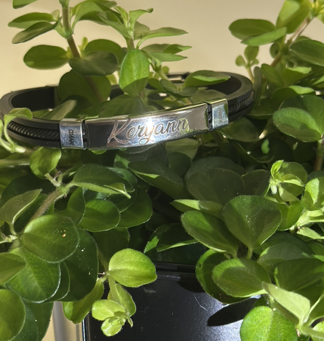 Magnifique bracelet homme en acier inoxidable et en jonc noir personnalisé au prénom de votre choix .